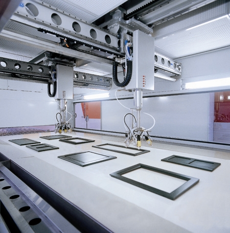 -Permite a recuperação do produto e uma perfeita adesão à peça mantendo limpa a outra face, sistema com um carro de limpeza com extração, minimo consumo de solventes e tempos curtos de limpeza.